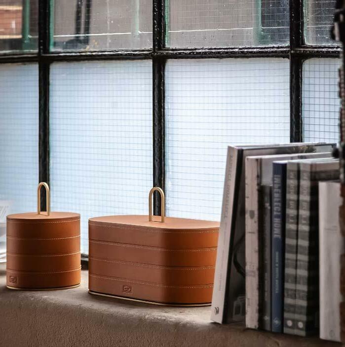 ↖ Leather Basket, Ø 40 h 30, Pelle Frau® SC 67 Chiodi di Garofano