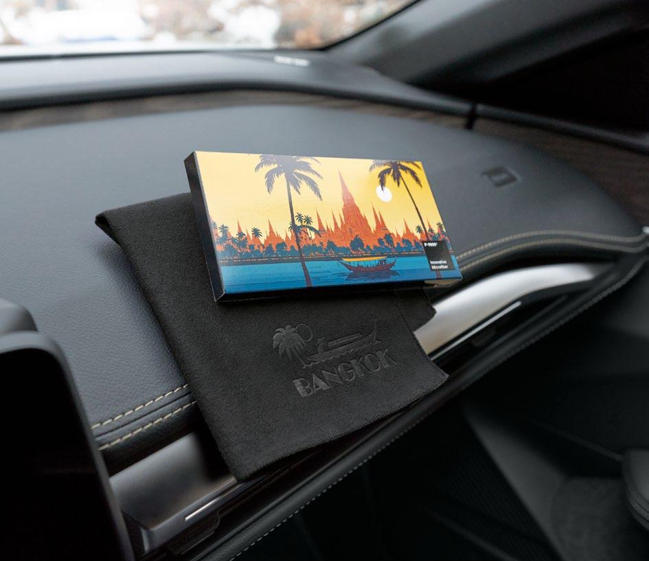 Ob im Auto, zu Hause oder unterwegs – der Displayschwamm überzeugt besonders durch sein Design und den farbintensiven Druck auf hochwertigem, veganem Kunstleder.
