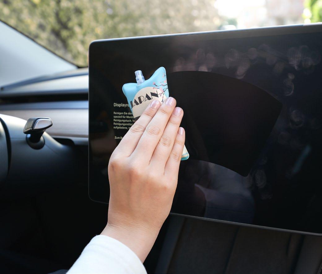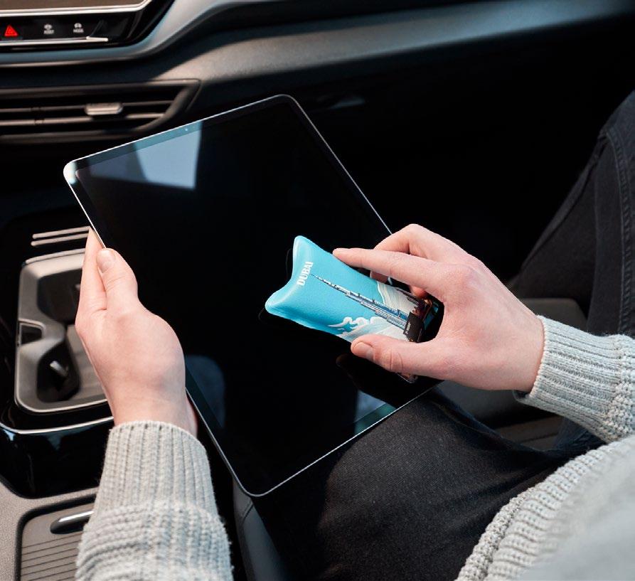 De rPET CarKoser ® Premium verwijdert verveling en vuil op een duurzame manier uit de auto: De multifunctionele spons is geschikt voor het reinigen van het dashboard, het display en de voorruit.