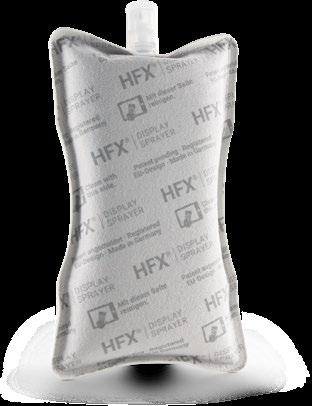 De HFX® -DisplaySprayer heeft geen chemische reinigingsmiddelen, alcohol of ammoniak nodig. De combinatie van P-9000 ® Microvezel en bij voorkeur gedestilleerd water verwijdert vervelende vingerafdrukken zonder residu achter te laten en zorgt in een handomdraai voor streepvrije displays. Steeds opnieuw! De HFX® -DisplaySprayer is snel en eenvoudig navulbaar. Eén vulling is voldoende voor 80 keer sproeien. De displayreiniger wordt geleverd met een papieren banderol. Individuele motieven kunnen al vanaf 100 stuks worden gerealiseerd met full-color, hoogwaardige digitale druk.