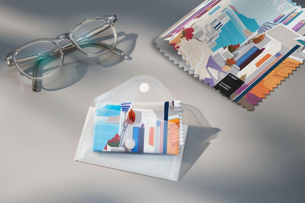 Wij brengen uw ontwerp perfect in beeld op het brillendoekje. Het doekje wordt verpakt in een papieren etui, dat een extra reclameoppervlak biedt en het totale pakket compleet maakt. wodmU P-9000 ® Microvezel rPET