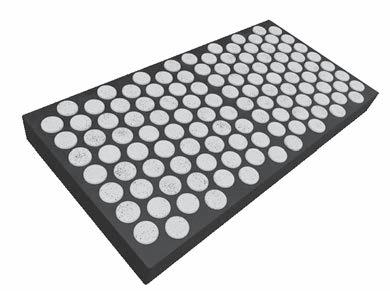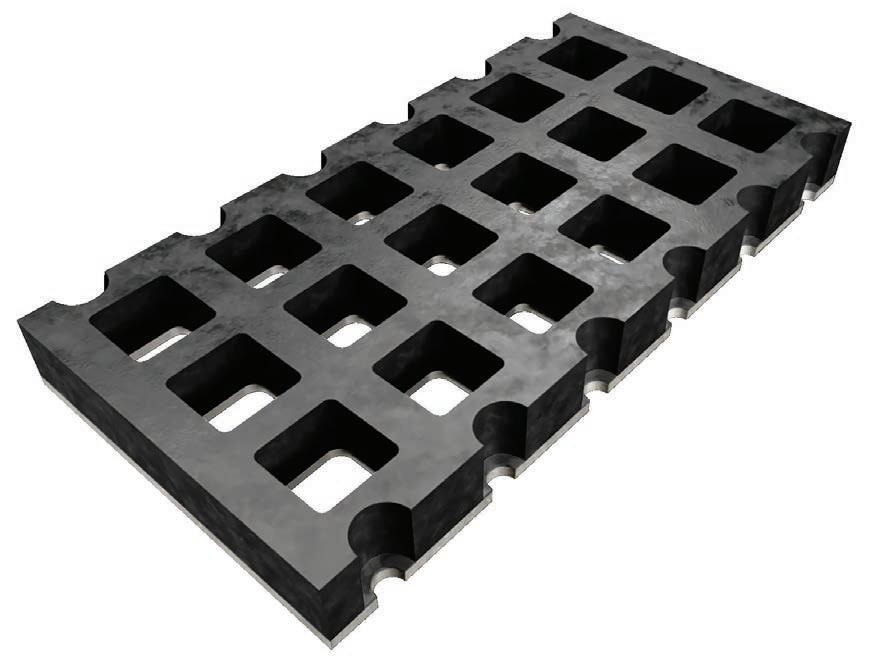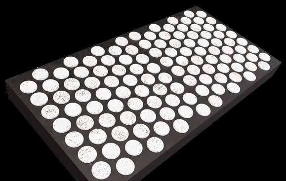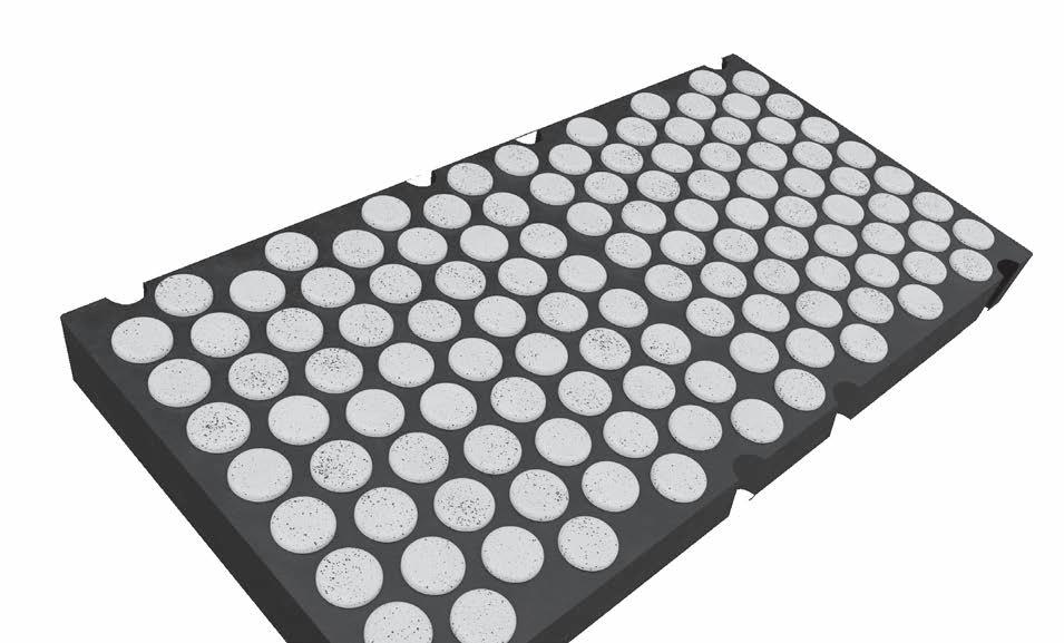 Elastic formulation. Flexes under impact and selfcleans via secondary motion. Detaches blinding and clears buildup in wet and dry applications.