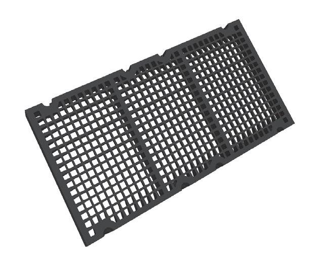 Enhances drain rates when parallel to flow. Reduces plugging and passage of oversized material when perpendicular to flow.