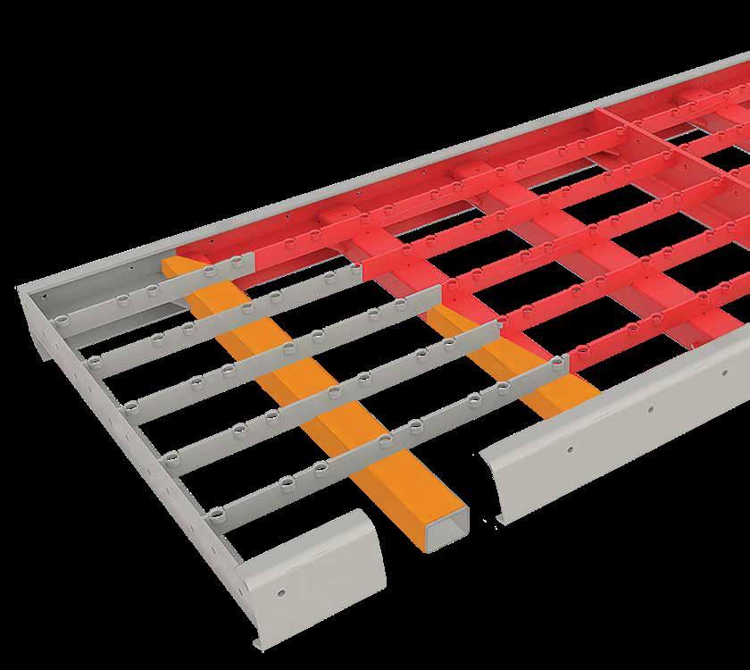 Série de barras longas e finas orientadas no sentido do fluxo de material. Melhora a eficiência de peneiramento, impedindo que materiais grandes bloqueiem as aberturas. Adiciona suporte adicional e aumenta a vida útil da mídia.