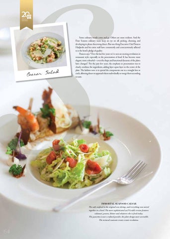 Some culinary trends come and go. Others are more resilient. And the Four Seasons culinary team keep an eye on all, picking, choosing, and developing to please discerning diners. But one thing Executive Chef Panicos Hadjitofis and his entire staff have consistently and conscientiously adhered to is the hotel’s pledge of quality. Panicos says: “Over the last five years we’ve seen an exciting revolution in restaurant style, especially in the presentation of food. It has become more elegant, more colourful – even the shape and functional dynamic of the plates have changed.” For the past few years, the emphasis in presentation was to closely combine the ingredients, adding layer upon layer in the centre of the plate. The fashion now is to spread the components out in a straight line or circle, allowing diners to approach them individually or merge them according to taste.