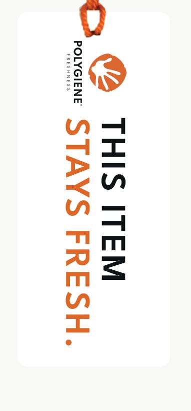We’ve made it easy for you to deliver this added value with ready-to-use materials for your product marketing. This document has what you need to describe the benefits of having Polygiene technology in your products, including examples of labels, hangtags, and other trims.