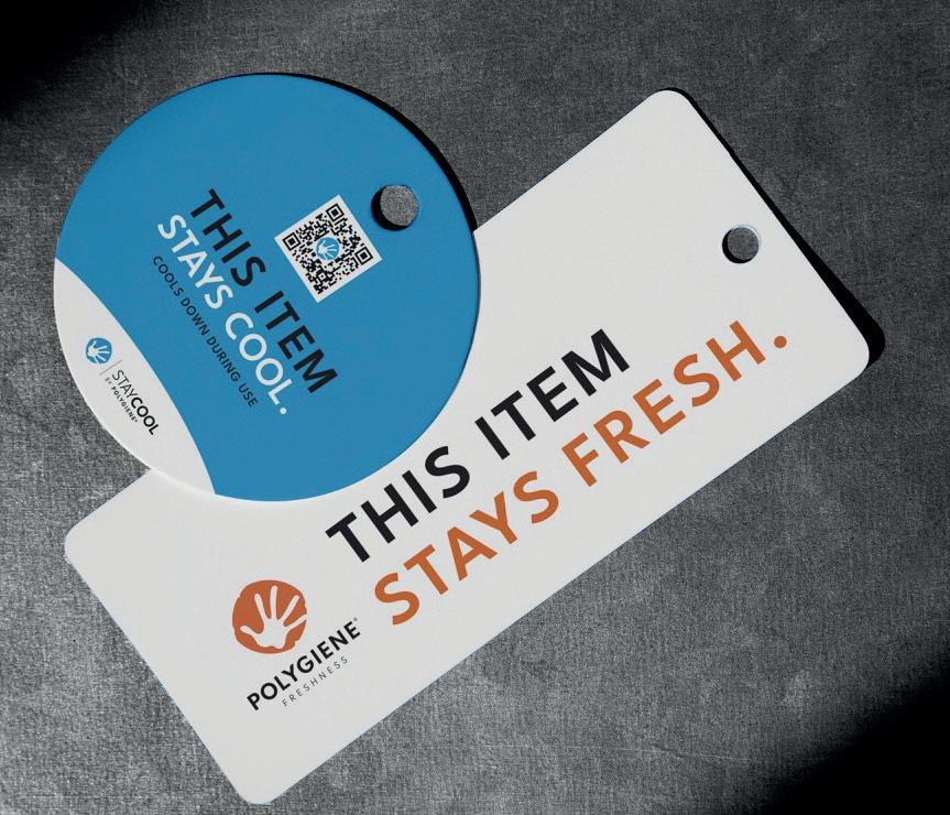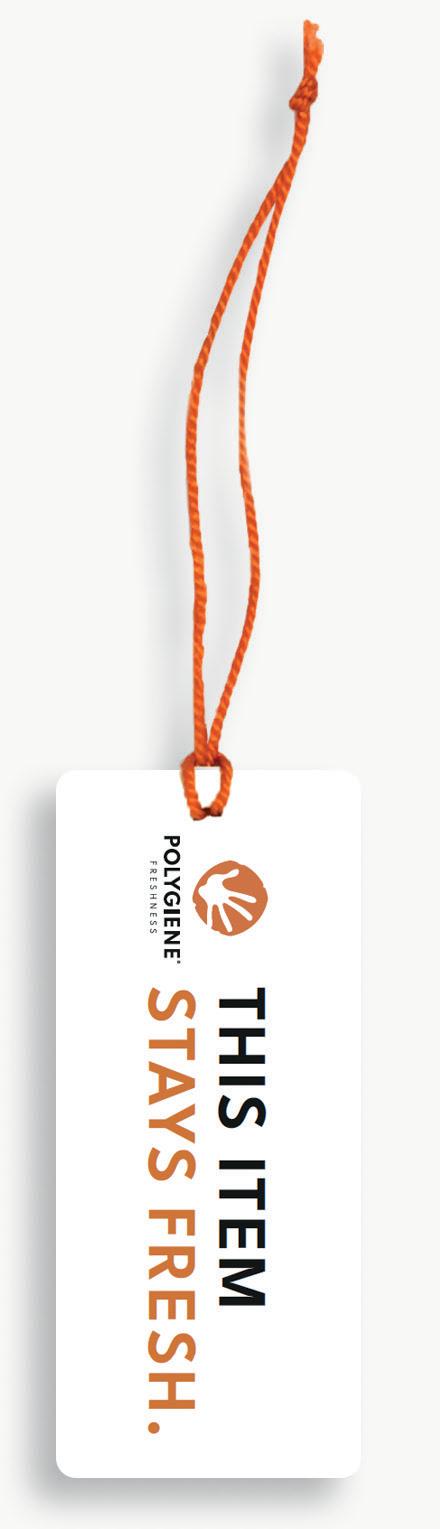 Polygiene® hangtags highlight the built-in technologies that make a real difference — helping products stay fresh, feel better, and last longer.