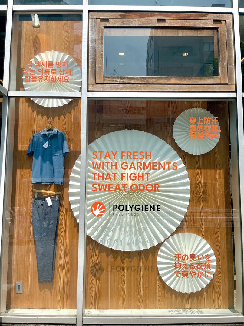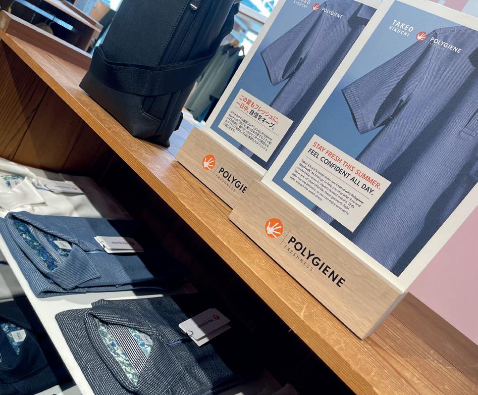 The campaign extended beyond the physical space, with Polygiene featured on Takeo Kikuchi’s website and social media, further strengthening visibility and engagement with both local and global audiences.