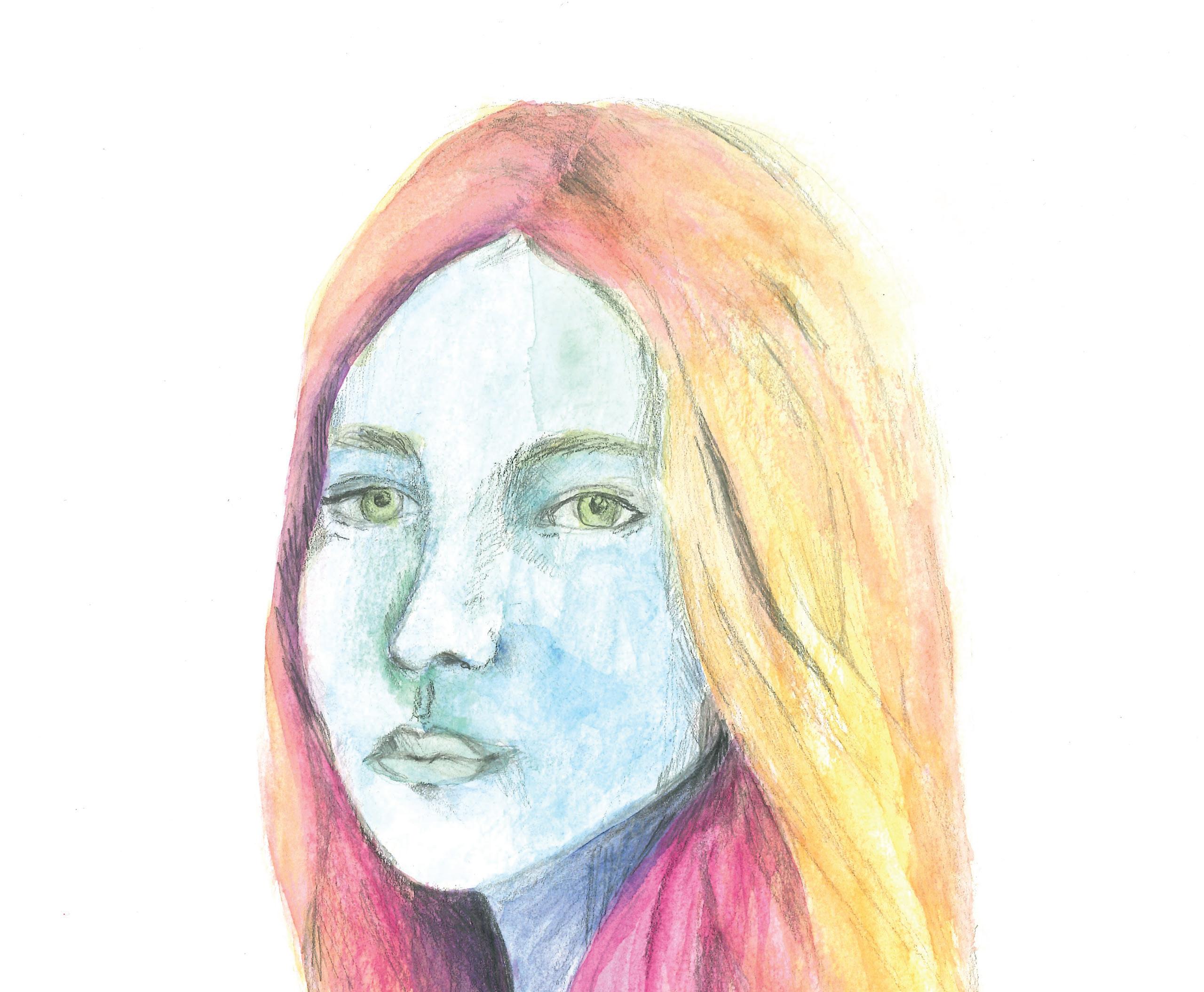 Lauren and Uzochi incorporated a dynamic use of color for their skin and hair creating a self portrait connected more to their internal feelings or expressive mood than a traditional painting of their likeness.