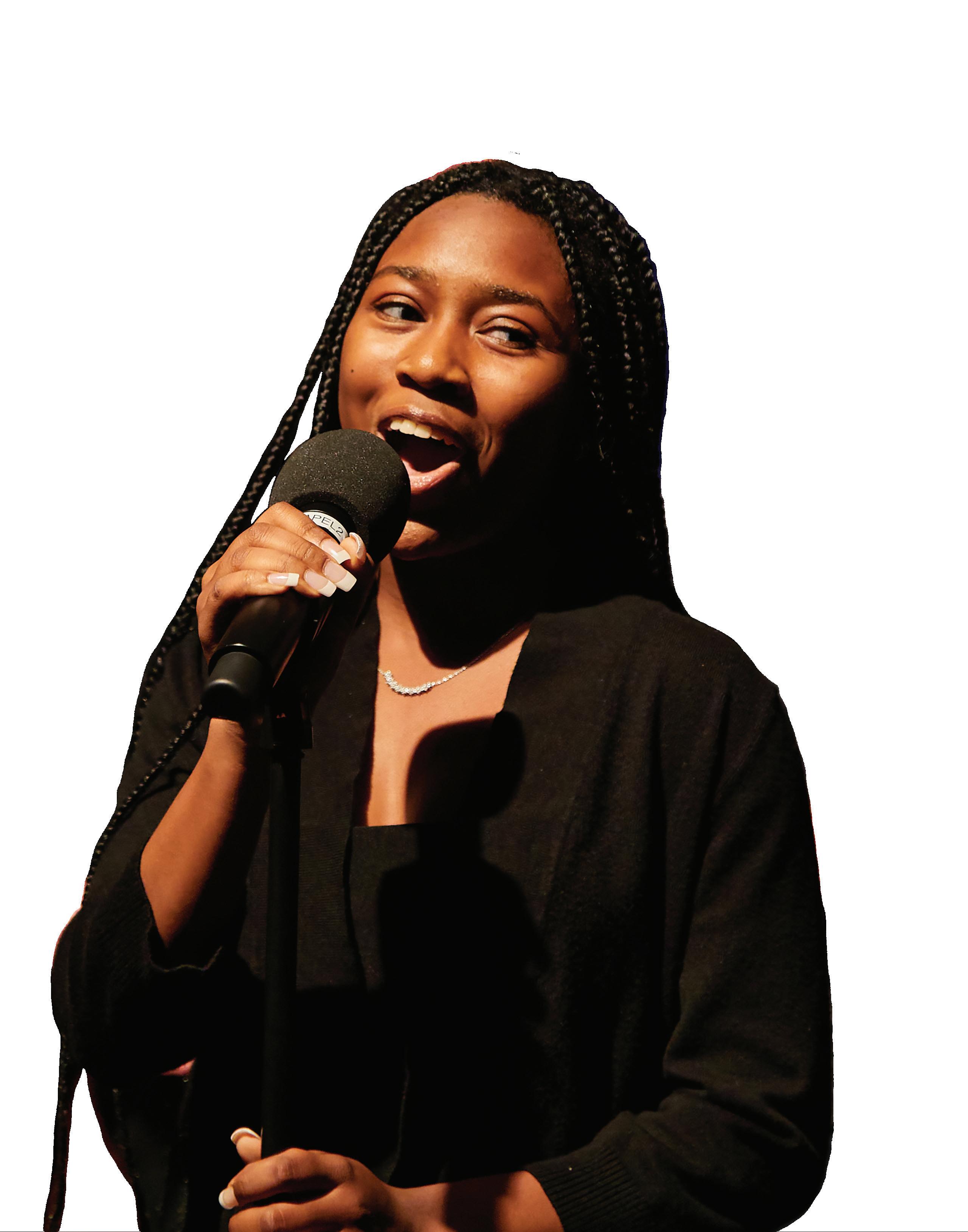 Lower School students, Jasmine Donald ’24 sings at the Vocal Concert; All-Ivy First Team member Karim Camara ’25 on Oasis Night.
