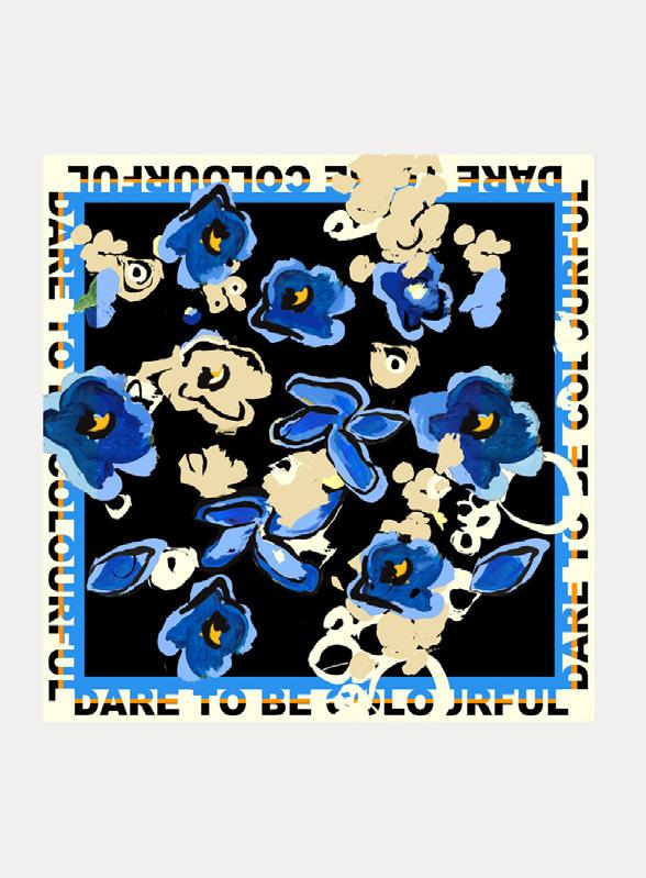 Be proud and express yourself in all glory. Where Klimt’s sleek black accents unite with delicate brushstrokes in winter shades like golden yellow, royal blue, and red, striking shapes hold your gaze. Discover proud birds with feathery plumeau-tails and the female eye that references both Egyptian times and the female images in Klimt’s work.