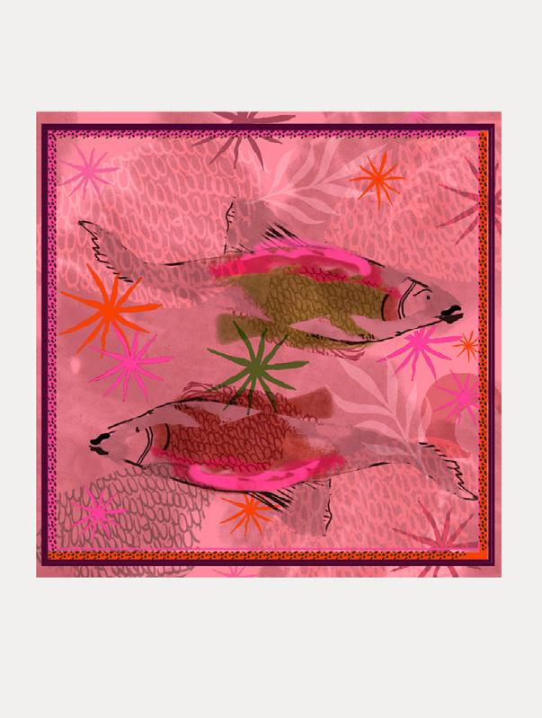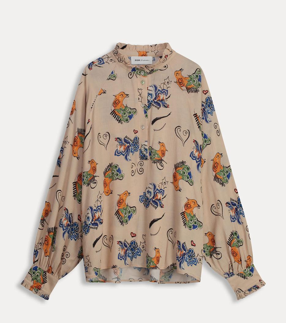 All prints and designs are painted by hand in-house. We operate with care for people, animals and nature. More than 60% of our collection this year is made from sustainable and recycled materials.