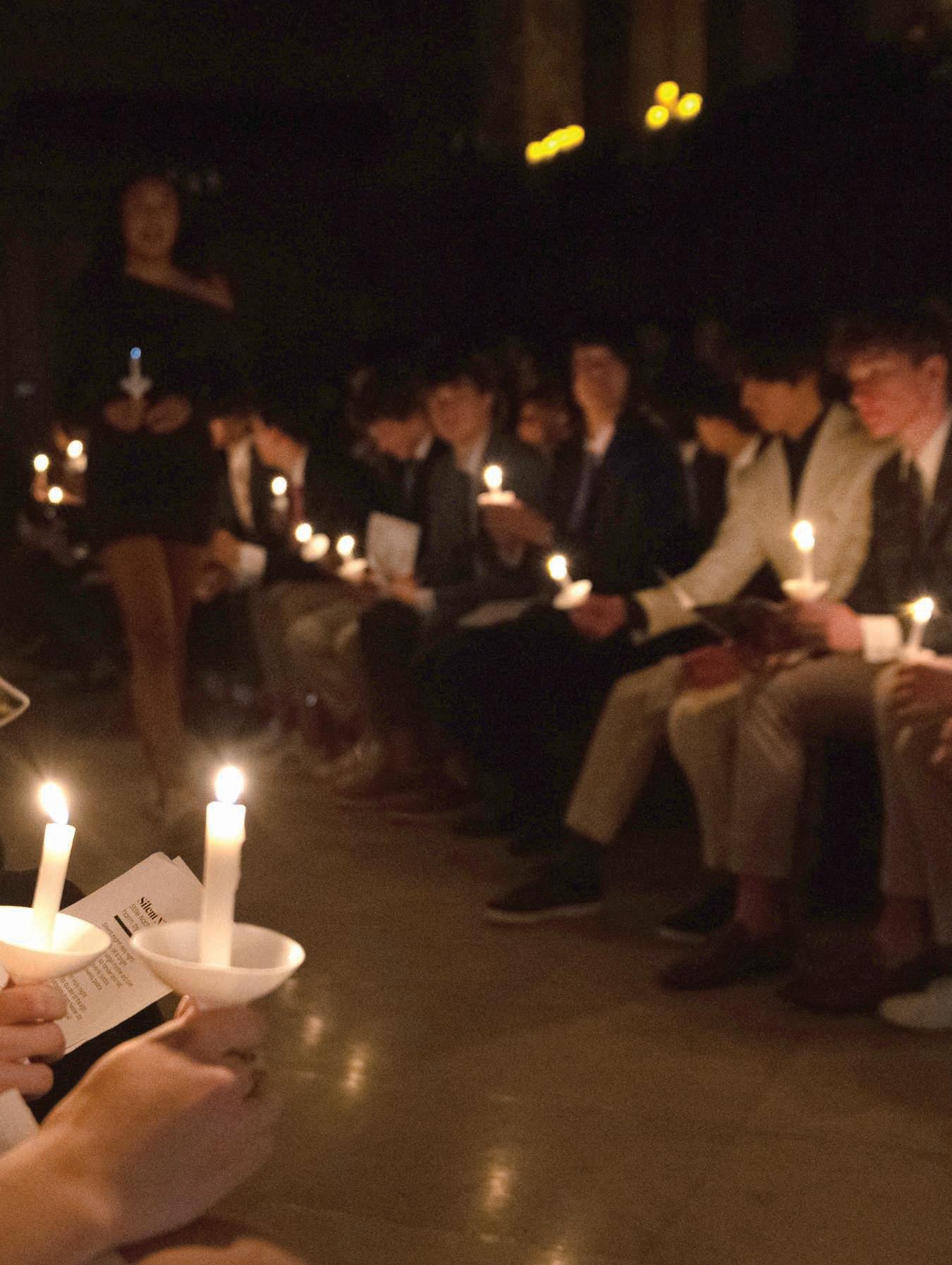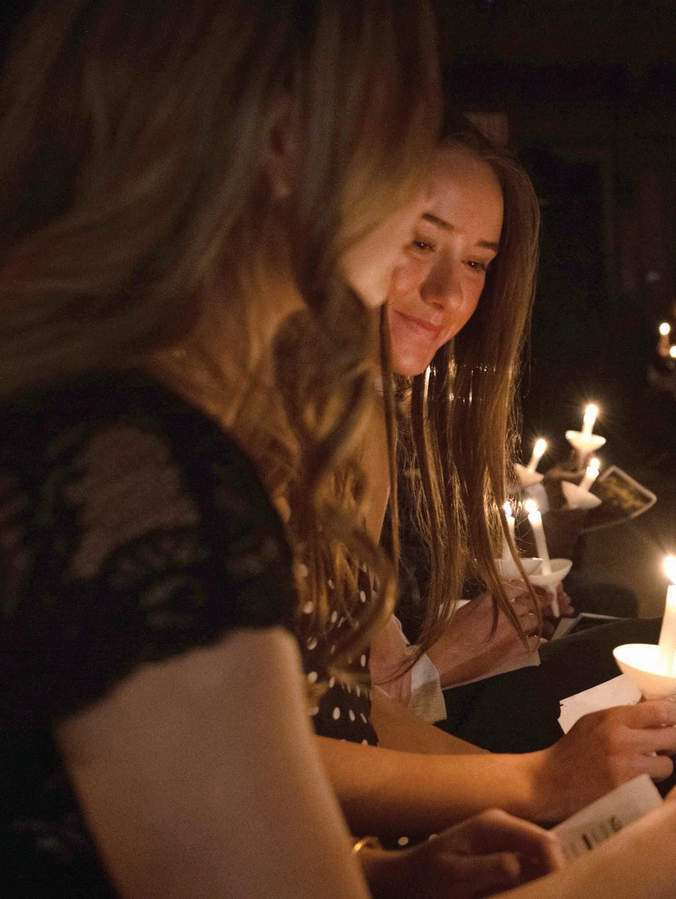 I experienced this firsthand when I joined The GriffTones to sing in Pomfret’s Candlelight concert. Director of Music Dr. Ryan Burns opens participation to any member of the community. In addition to the students who are regularly part of The GriffTones, we were joined by a cohort of senior girls who had never performed with a choir, but wanted to check this tradition off their Pomfret bucket list.