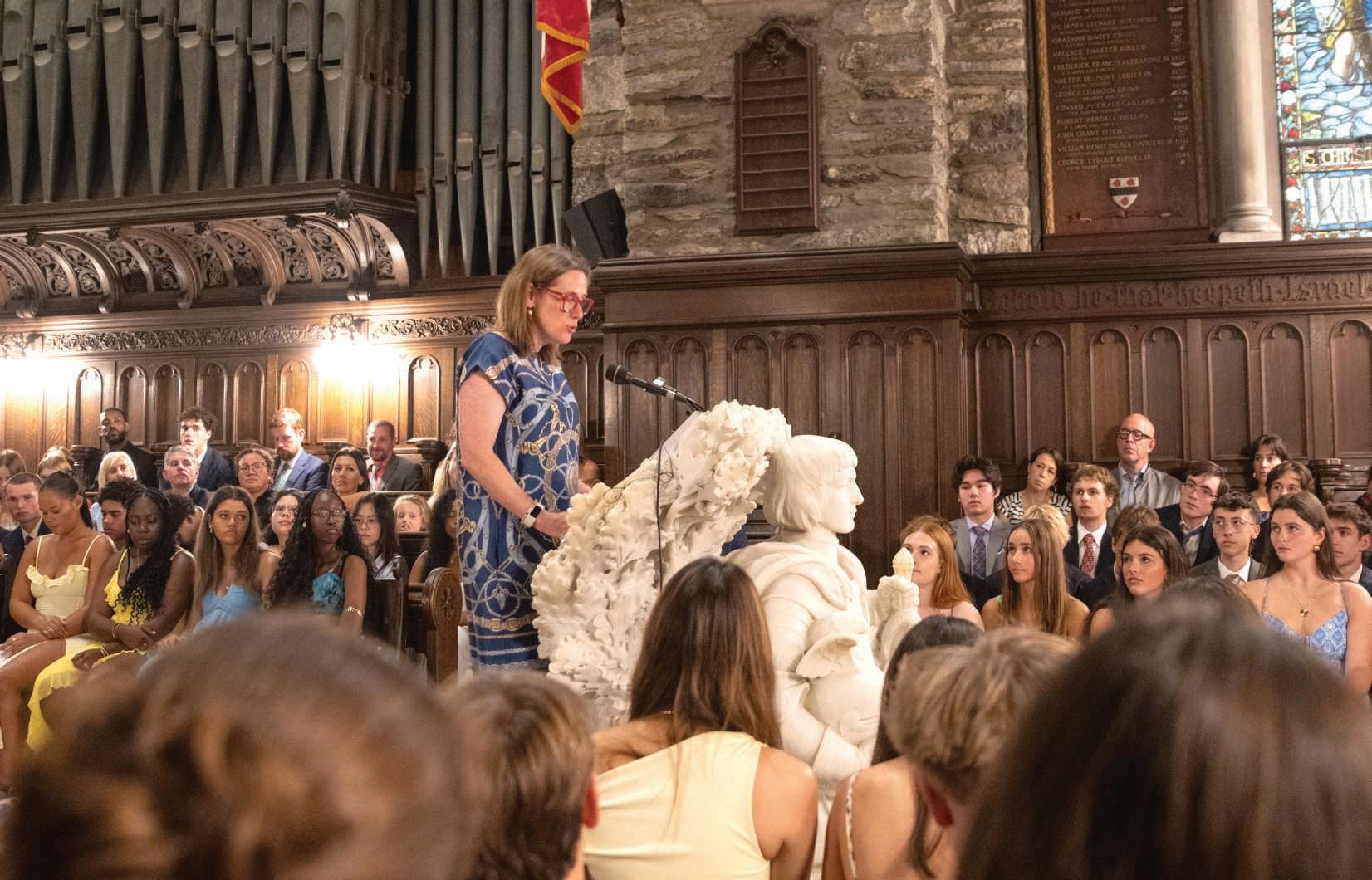 More than five hundred students, faculty, staff, trustees, alumni, and friends gathered to witness this historic occasion. Daly now joins the ranks of Pomfret’s visionary leaders — and is the first woman to hold the role of head of school.
