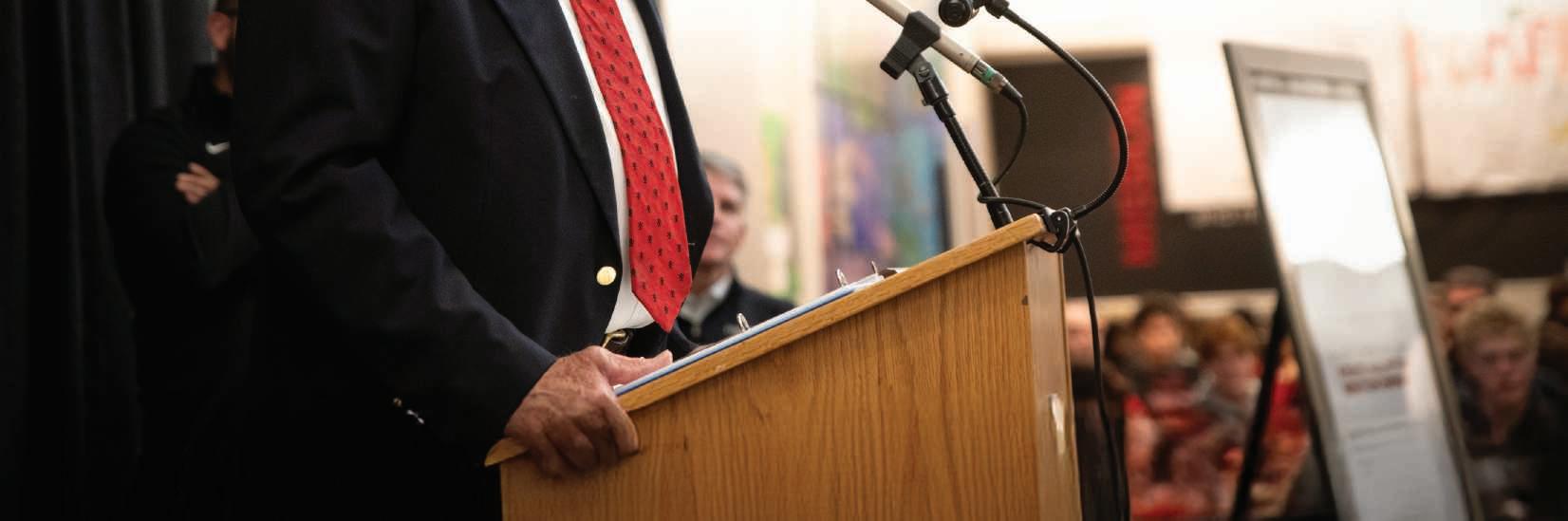Board of Trustees Chair Daryle Bost ’89 welcomed guests to the ceremony, praising Daly’s vision and commitment. “I stand before you on this day with gratitude in my heart for everything that has led us to this moment, and a deep hope for the future of this remarkable institution,” he said.