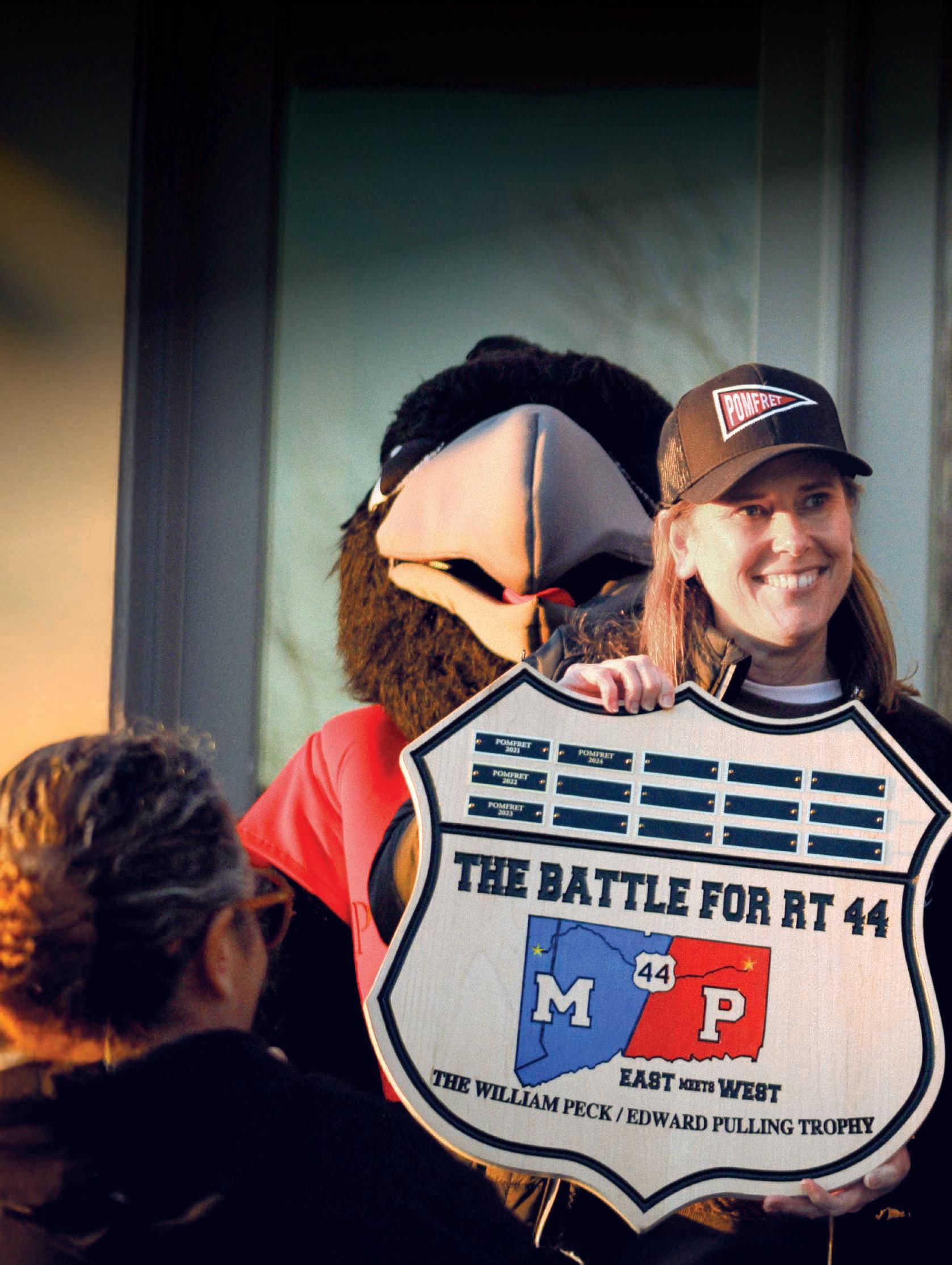 The Battle for Route 44 began with a meeting between Pomfret Head of School Tim Richards and Millbrook Head of School Drew Casertano, who envisioned a friendly athletic competition between the evenly matched schools. Delayed from 2020 to 2021 by the pandemic, the first battle took place after Casertano’s retirement, with Jon Downs assuming leadership at Millbrook. In 2025, Heather Willis Daly succeeded Richards at Pomfret, carrying forward the rivalry’s founding spirit and the pride of the Hilltop.