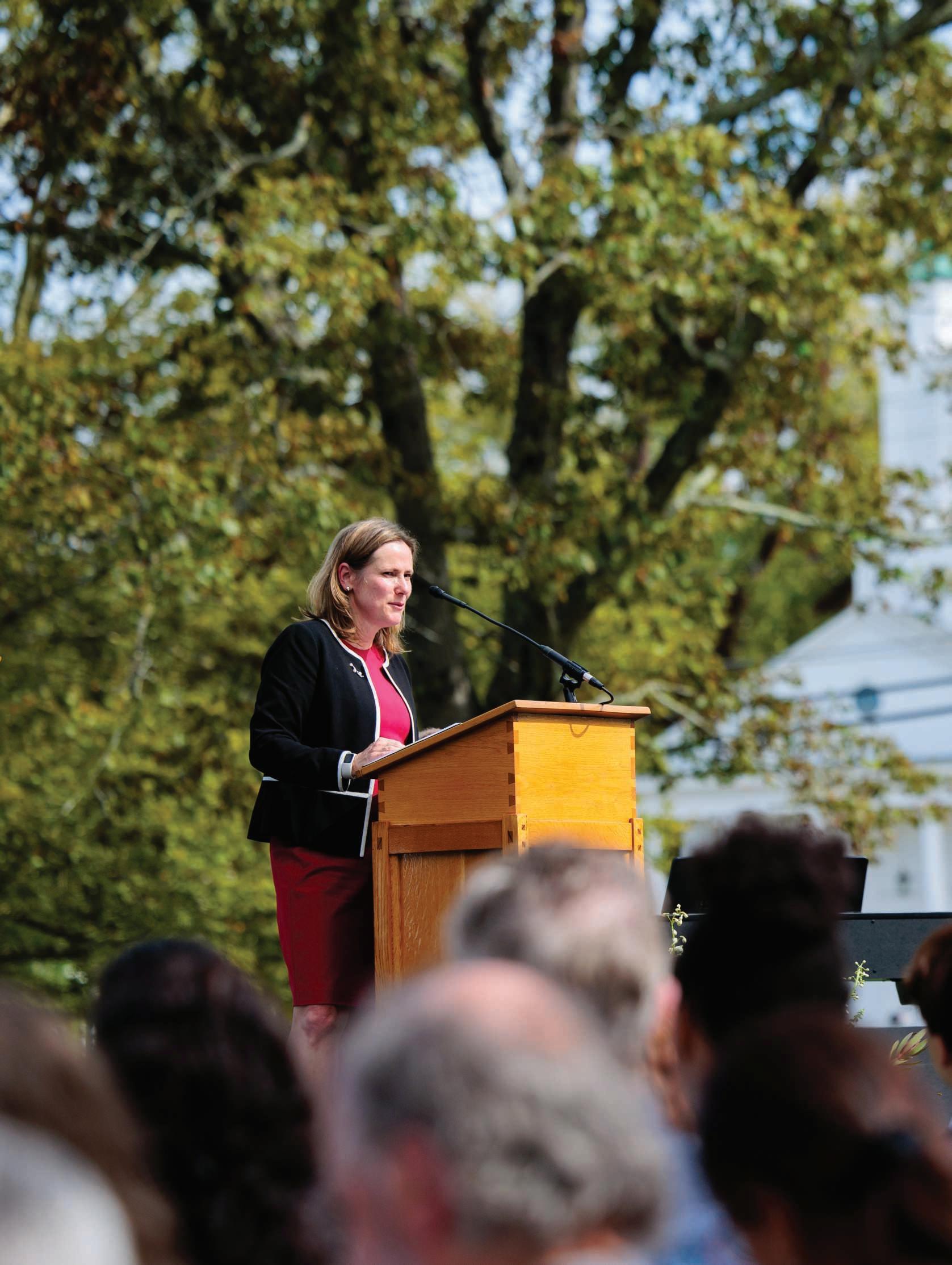 In preparation for her role and to better understand Pomfret’s history, Daly spent time over the summer reading The Spirit That Is Pomfret. In its foreword, then–Board President Barclay Robinson, Jr.wrote:“Likeeveryteacherandstudent, every headmaster has made, and left, his mark on Pomfret School. (Inevitably, with time, we shall say her mark.)”