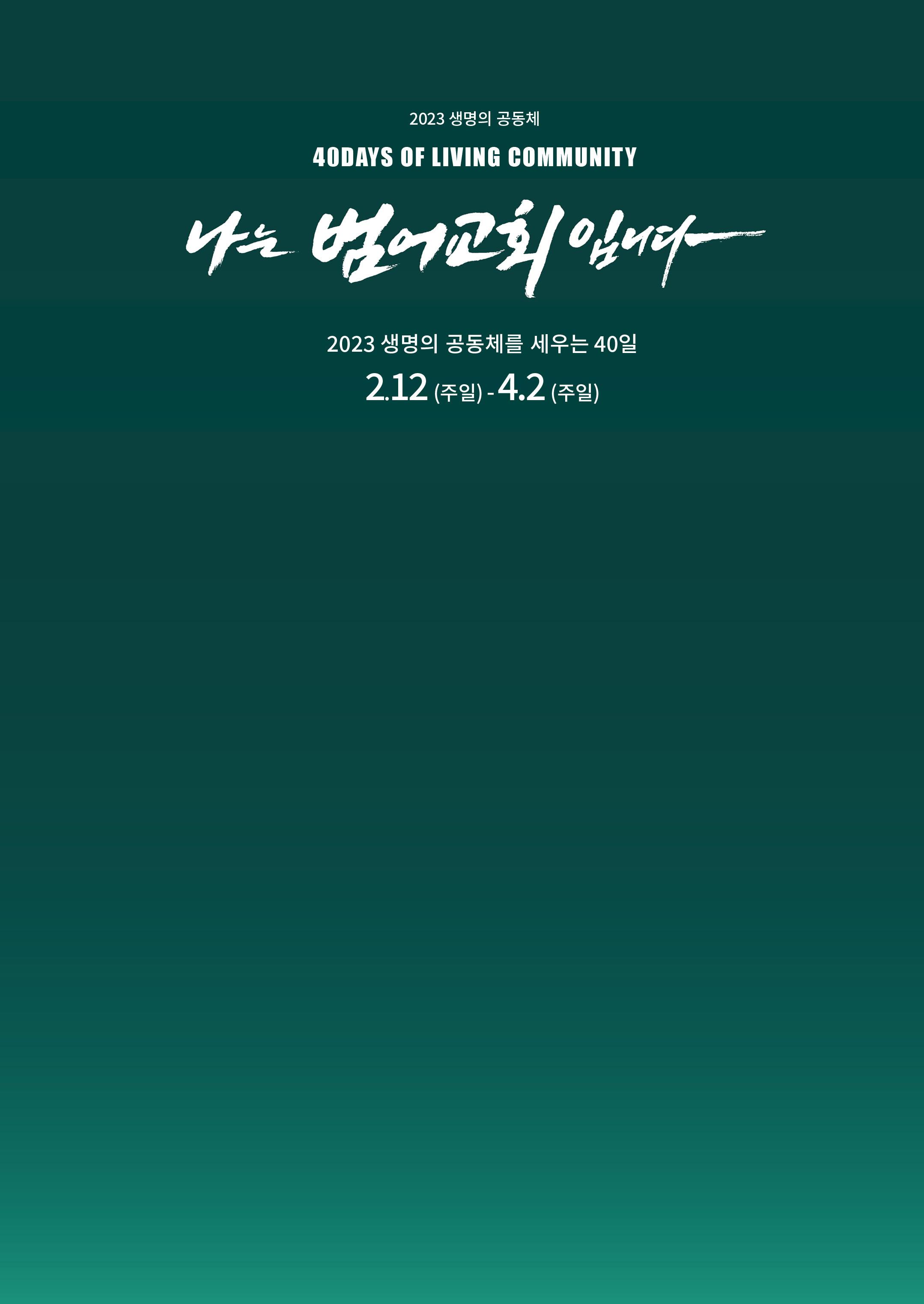목표 : 교회의 정체성이 담긴 공동체 고백을 40일 동안 온 교회가 함께 배우고 실천하여 체득한다.