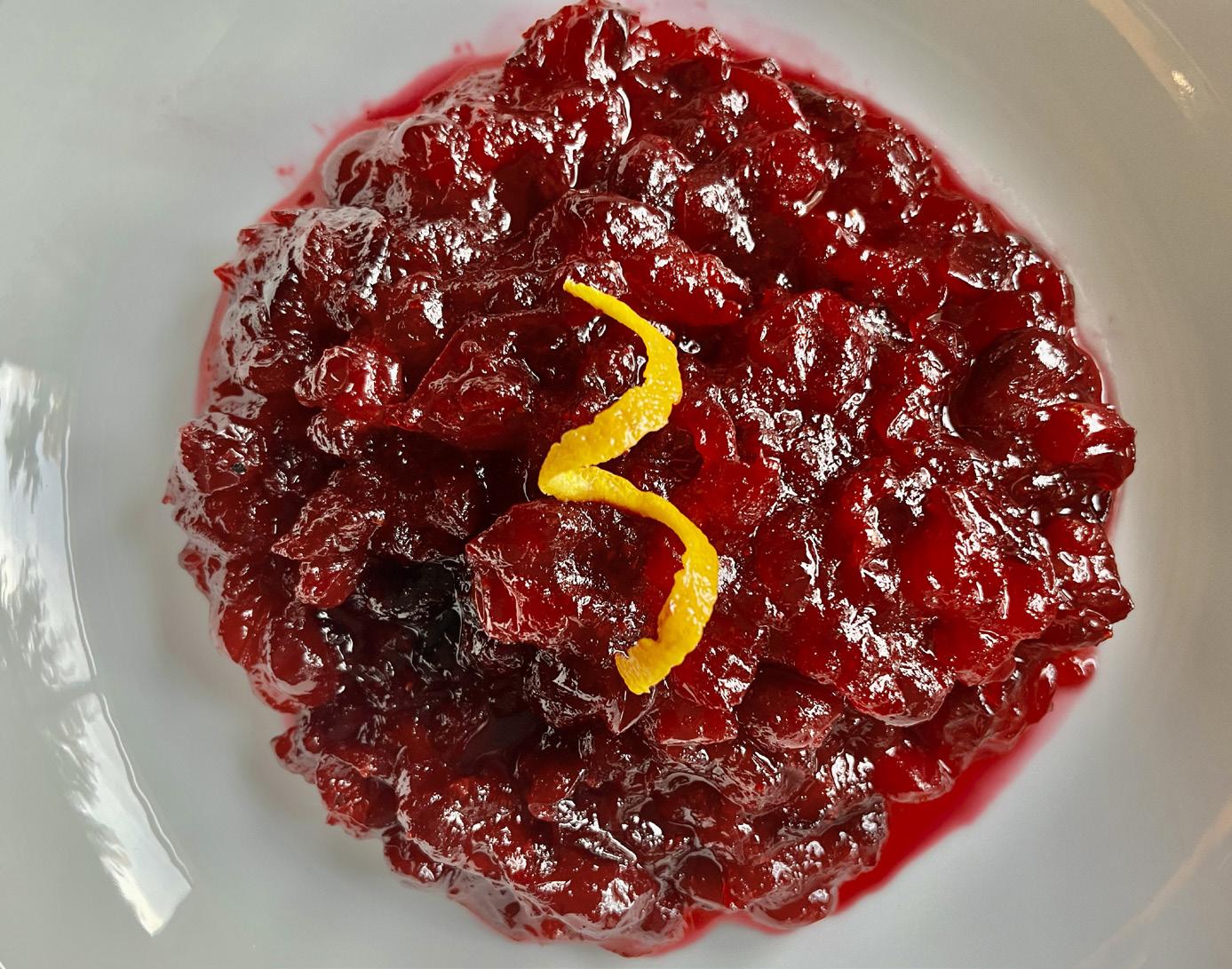 Ingredients 16-oz. fresh cranberries, 1/2 cup reserved 1 orange, zested and juiced 1 cup sugar 1 cinnamon stick 2 star anise 1/4 cup water