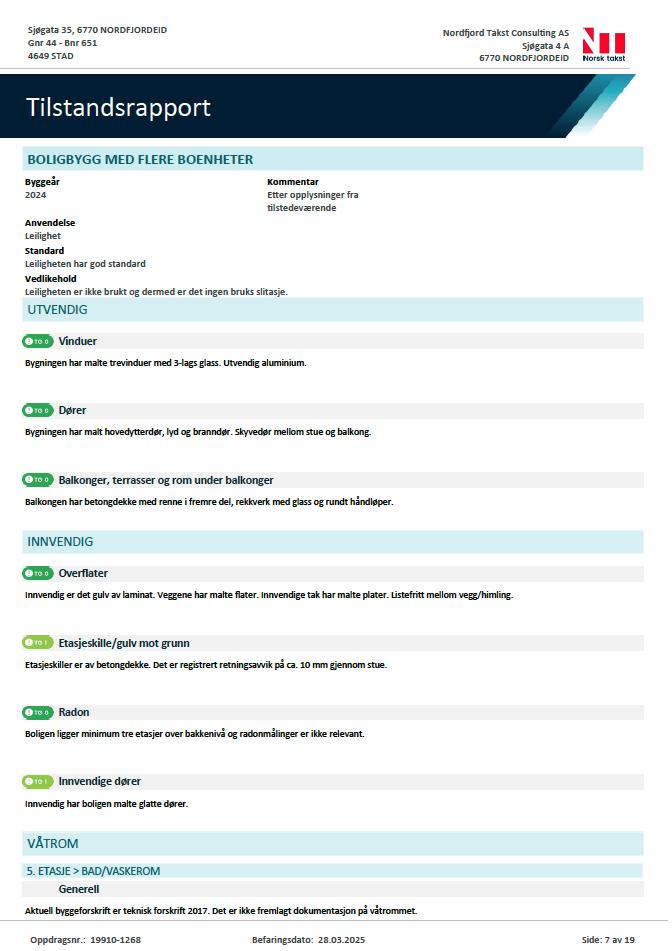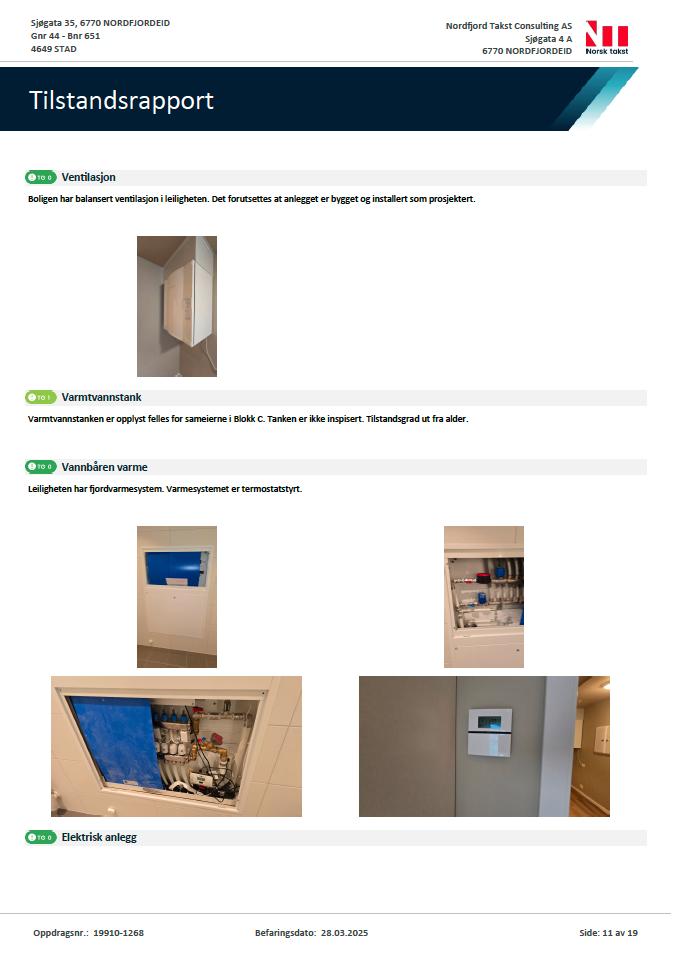 Med omsyn til den tekniske standarden på bygningen vert det ellers vist til FDV dokumentasjon fra de ulike leverandørene.