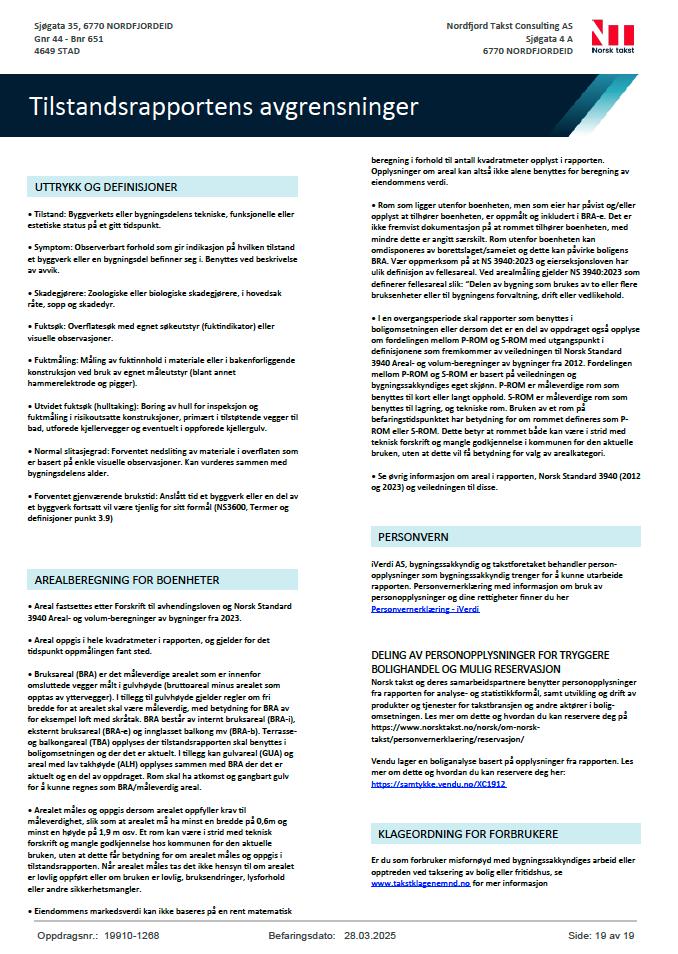 Kjøper plikter å gjøre seg kjend med innholdet i taksten før det blir lagt inn bud på eiendommen. Selger gjør ellers oppmersom på kjøper si undersøkingsplikt med hjemmel i avhendingsloven.