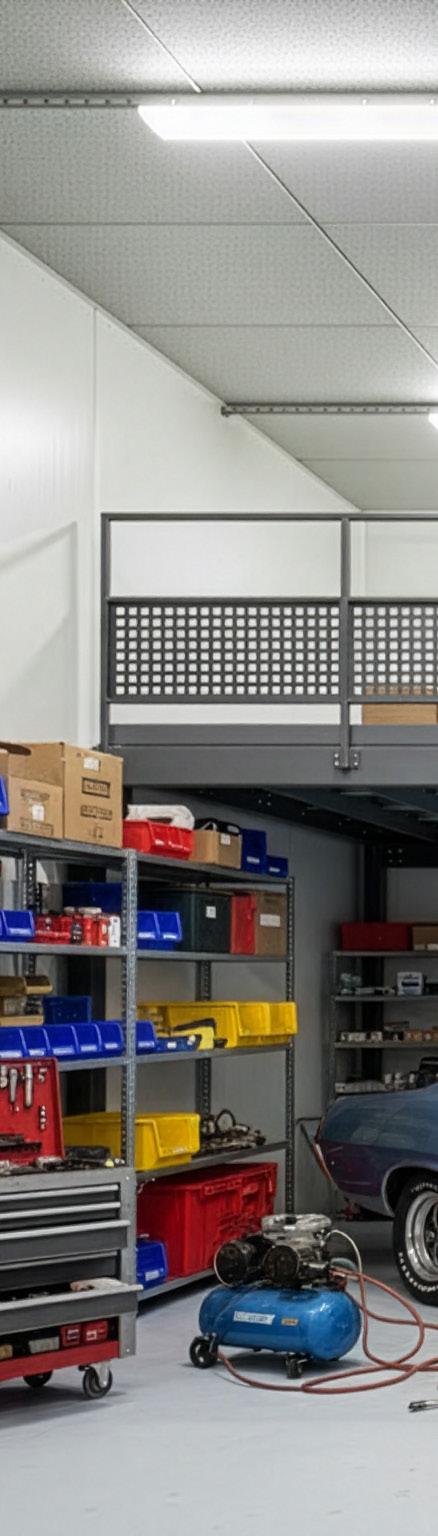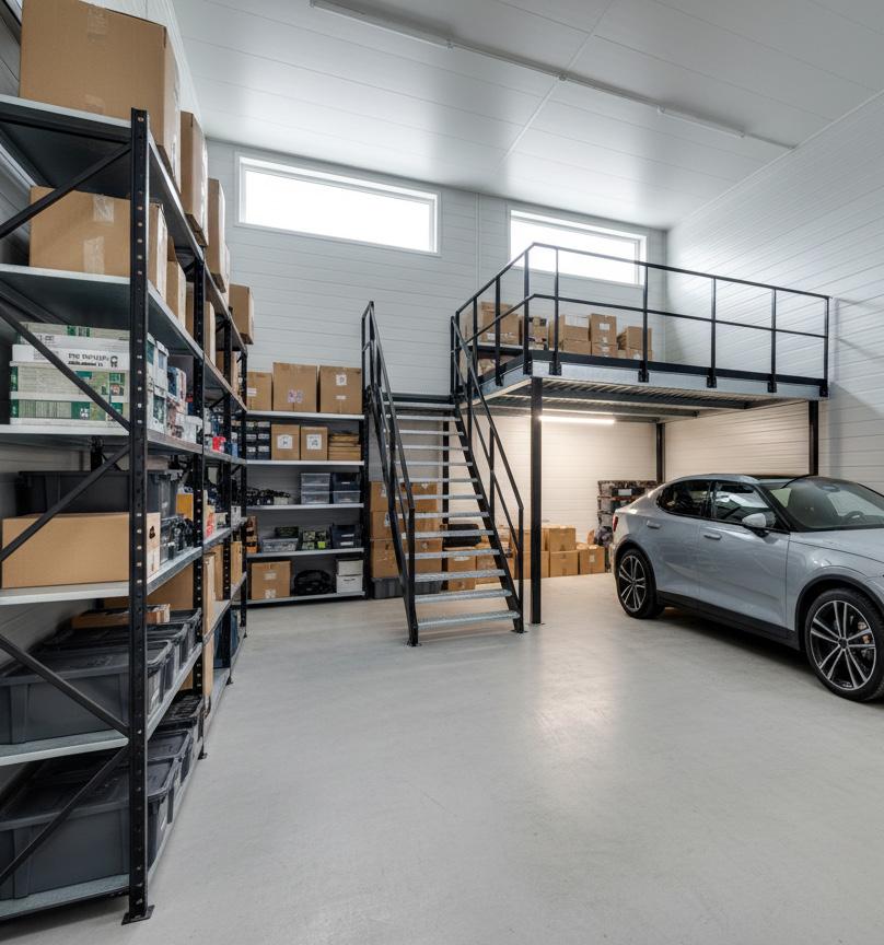 Du har full kontroll over lagerseksjonen din og kan enkelt tilpasse den etter behov. Muligheten til å slå sammen flere lagerseksjoner gir deg mer plass hvis du trenger det. Du kan også lage mesanin for å øke tilgjengelig areal.