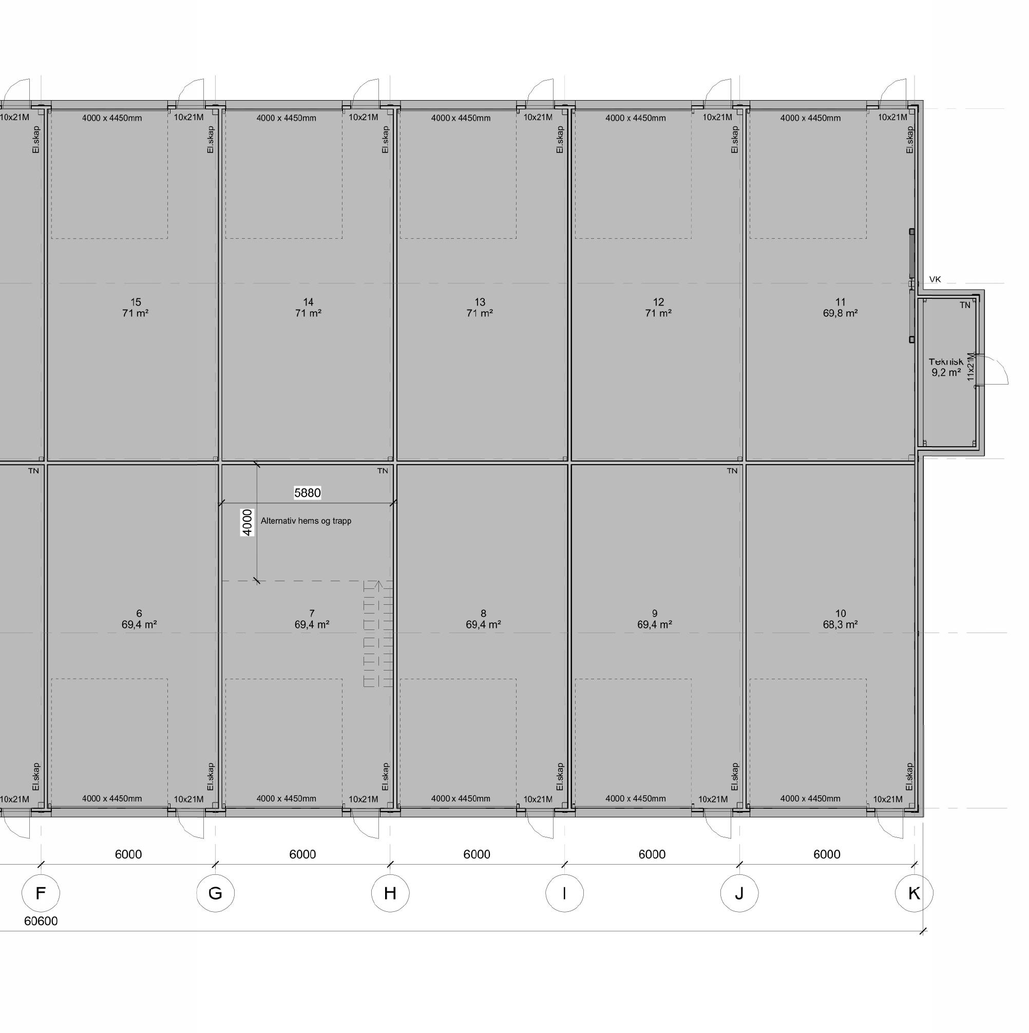 temperaturforhold. Egne strømmålere for seksjonen er plassert i teknisk rom. Det leveres adresserbart brannvarslingsanlegg. Seksjonen(e) er ikke beregnet for varig opphold eller permanente arbeidsplasser.