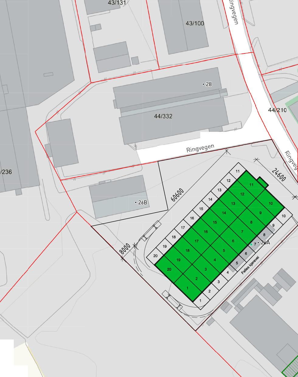 Eiendommen vil bestå av 1 lagerbygg med totalt 20 seksjoner.