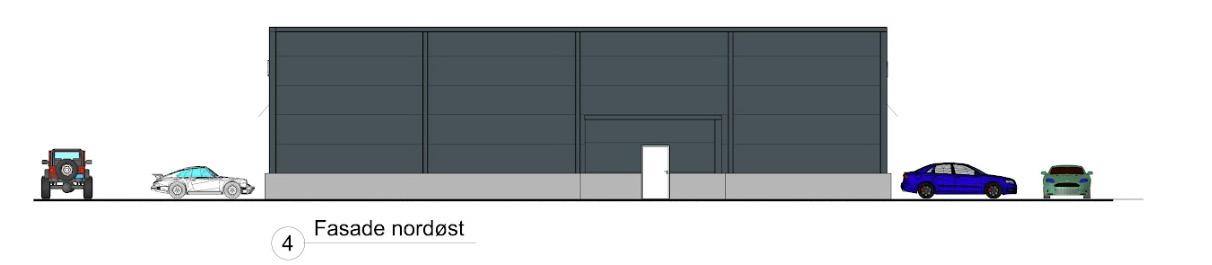 Fasadeelementer er av typen sandwichelementer. Yttervegger er isolert med skum. Innvendige delevegger er isolert med rockwool 10 cm og holder EI30 brannkrav. Innvendige vegger leveres med fargen RAL 9002. Utvendig benyttes fargen RAL 9007