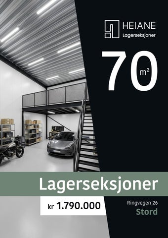 Nye isolerte lagerseksjoner i Ringvegen 26 på Stord. Lagerseksjonene leveres med standardstørrelser på 69-72 kvm. Det er mulig å kjøpe større arealer ved å slå sammen flere seksjoner. Hver seksjon er selveid og det opprettes et eget sameie for bygget.