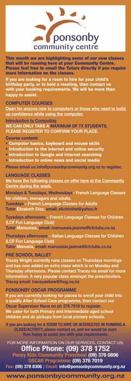 PONSONBY NEWS is published on the first Friday of each month excluding January. Copies go quickly so be quick to collect yours from any of the following outlets. The issue is also published on our website www.ponsonbynews.co.nz