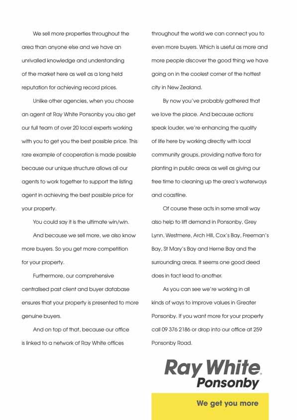 Thank you for a great Ponsonby News - the first of 2011. It’s colourful, thoughtful and altogether an excellent issue.