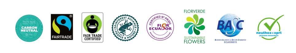change within the industry. This commitment ensures our unmatched quality and service, benefiting our community, our business partners, and the environment that surrounds us. At our core, we believe that initiating change begins with us, and we actively pursuit it in every endeavor. We proudly hold certifications from eight respected local and international organizations, including Carbon Neutral, FlorVerde, Fair Trade, Fair Trade USA, Rainforest Alliance, and Flor Ecuador, among others.
