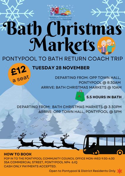 A new addition to 2023 was a Community Bus trip to Bath Christmas Markets, which was subsidised by the Council The trip enabled 50 members of the community to visit the iconic city Following the wonderful feedback from those who attended, a Summer Seaside Trip and Christmas Market Trip are in the pipeline for 2024