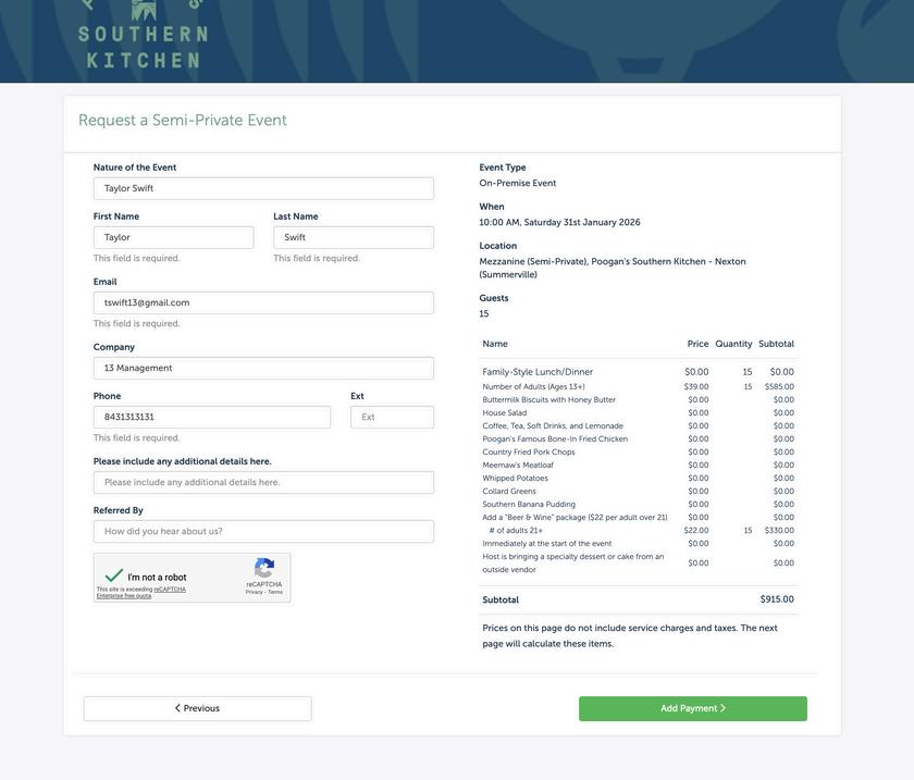 Enter your contact information and complete the captcha Add any special notes or requests in the “Additional Information” box Then, click the green “Add Payment” button