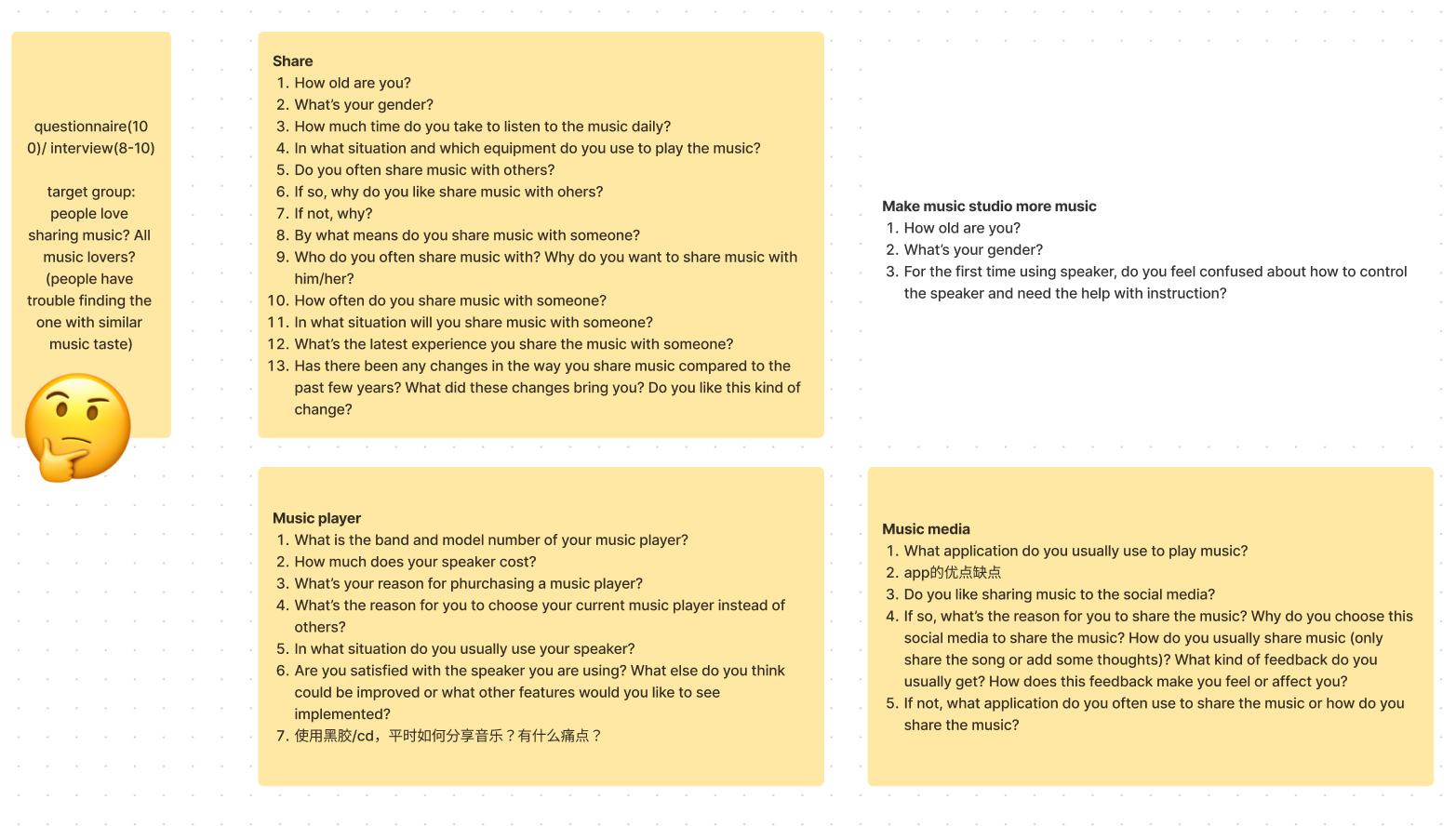 In order to better explore users' scenarios and needs for enjoying and sharing music in their daily lives, I invited six young people to conduct semi-structured user interviews and collected photographs of their usual music listening places and audio equipment. All data from images and audio files from