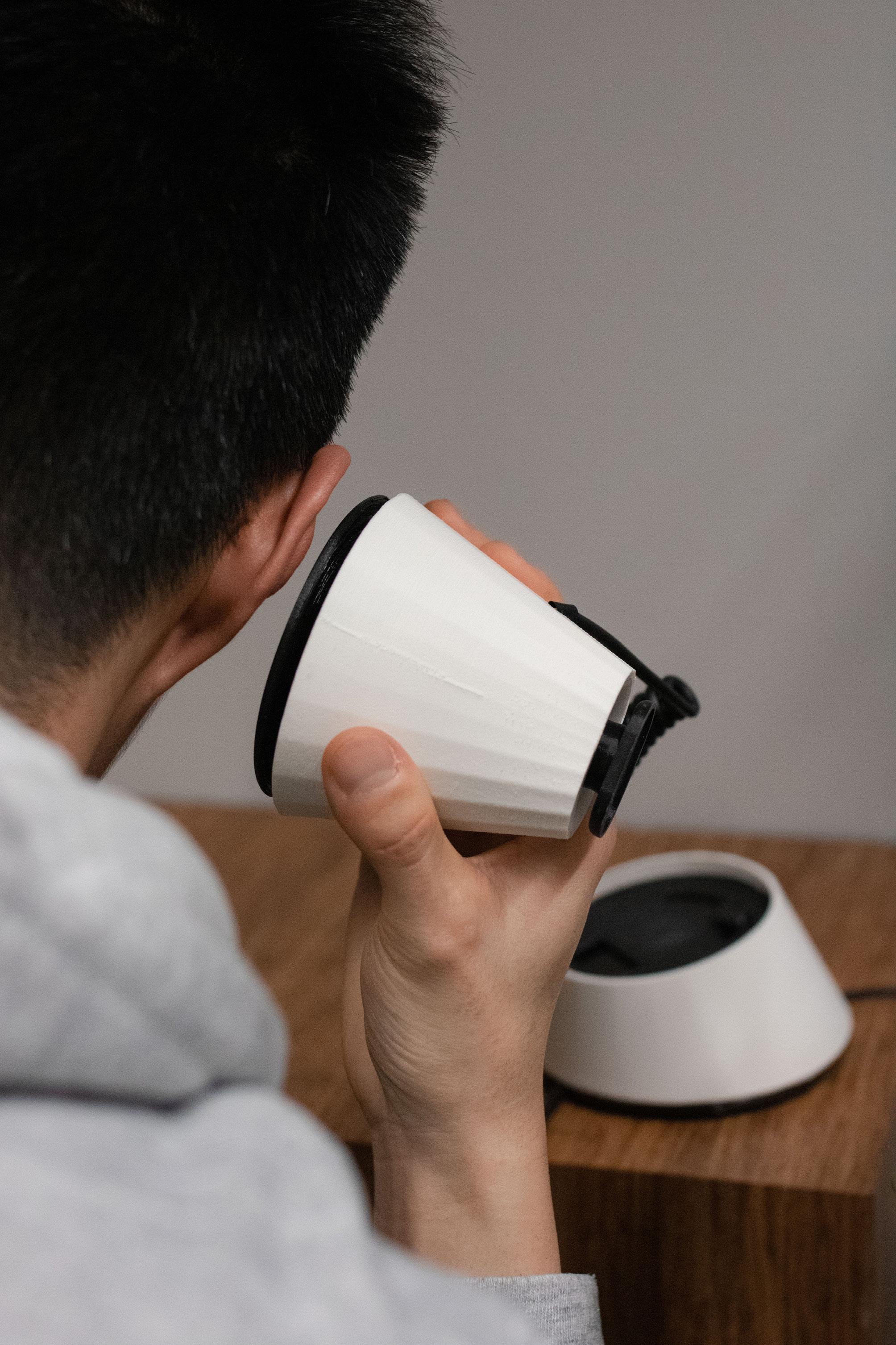 the styling of the Music Linker's earpiece echoes its interactive meaning, i.e., it extracts the interactive style of the paper cup earpiece and echoes its appearance. The combination of styling and interaction makes the product a more immersive experience for the user. Finally, the haptic interaction with the physical product enhances the sense of connection that the participants feel when they use the product, enabling them to feel more of an emotional connection to each other through sharing music.