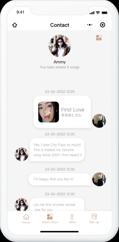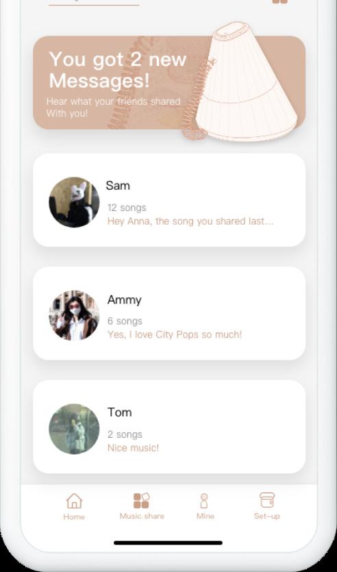 The user study's findings make it abundantly evident how important it is to display shared musical information. The sender of the song assumes that the recipient would listen to it, and the recipient might also anticipate the message to be a pleasurable experience and a surprise to themselves. For the person being shared, an attractive music message increases the likelihood that they will open the music. At the same time, due to the audible nature of music, the message should be presented in an appropriate way so as not to disturb the person being shared.