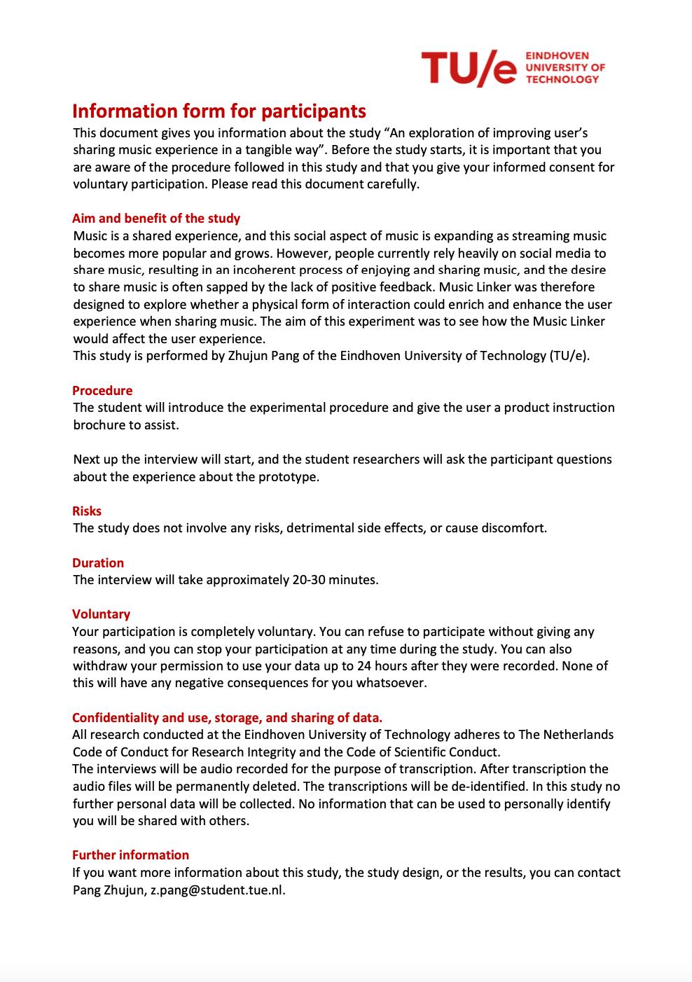 interviews were shared with participants and consent was sought before testing. Interviews were done in compliance with the Ethical Review Board (ERB) , which is a general regulation belongs to Industrial Design department.