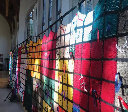 Stitching Stories is a 25-foot-long prison awareness quilt, crocheted by women incarcerated Correctional Institution for Women as they survived COVID in prison. This public art installation encapsulate the project into a more permanent form.