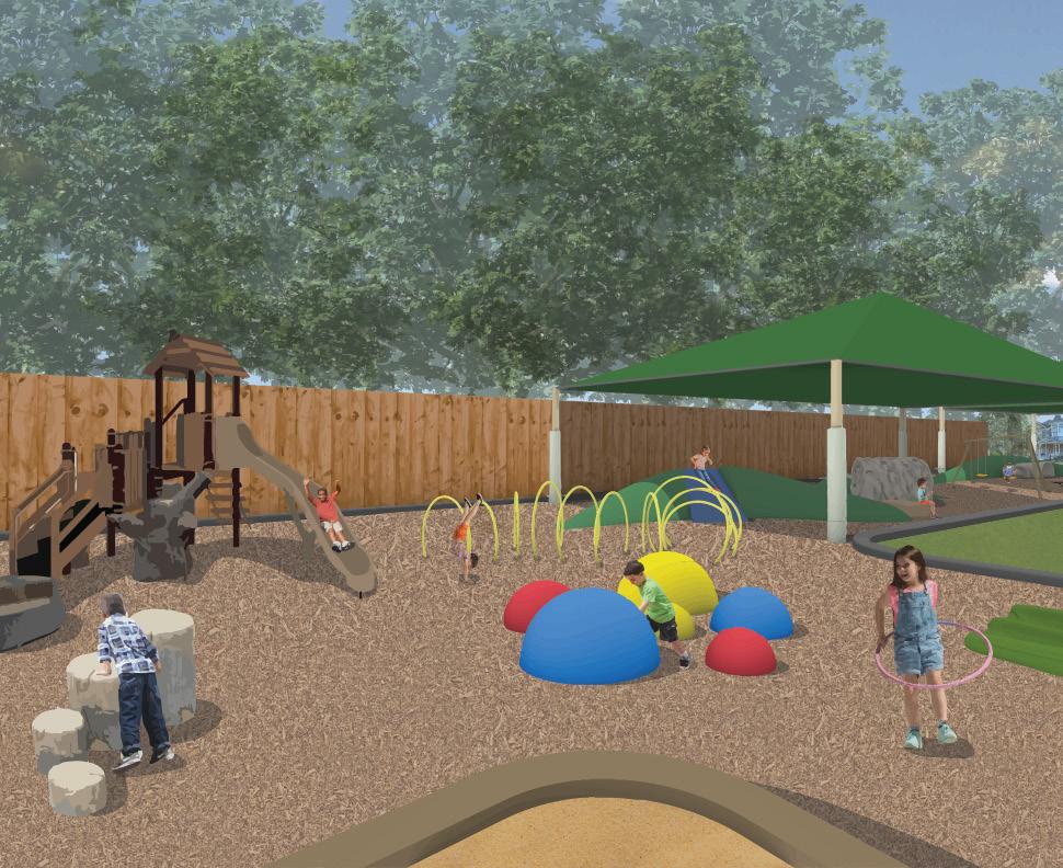 The African American tradition of quilting lives in the exterior represent safety: the log cabin and the flying geese. The inspiration from the buildings of Emancipation Park.