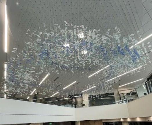 Located in Bridgerland Technical College - Health Sciences Building in Logan, Utah “Healix” is a sculptural piece featuring thousands of sea glass pieces suspended from the ceiling in two spirals. The team saw the process through from design ideation to fabrication methodology to installation.