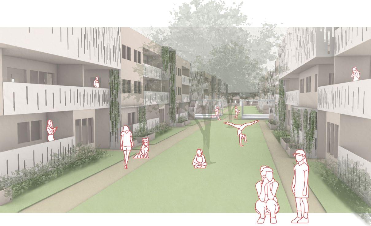 Eyes on the street: With lines of visibility from the front and back of homes, members of the community can look out for one another