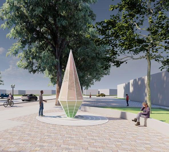 On August 4, 2019, nine individuals were killed and nearly thirty-seven injured during a mass shooting in the Oregon District of Dayton, Ohio. The city took on the motto Dayton Strong with the symbol of a diamond, which this project uses as inspiration for the form of the memorial sculpture.