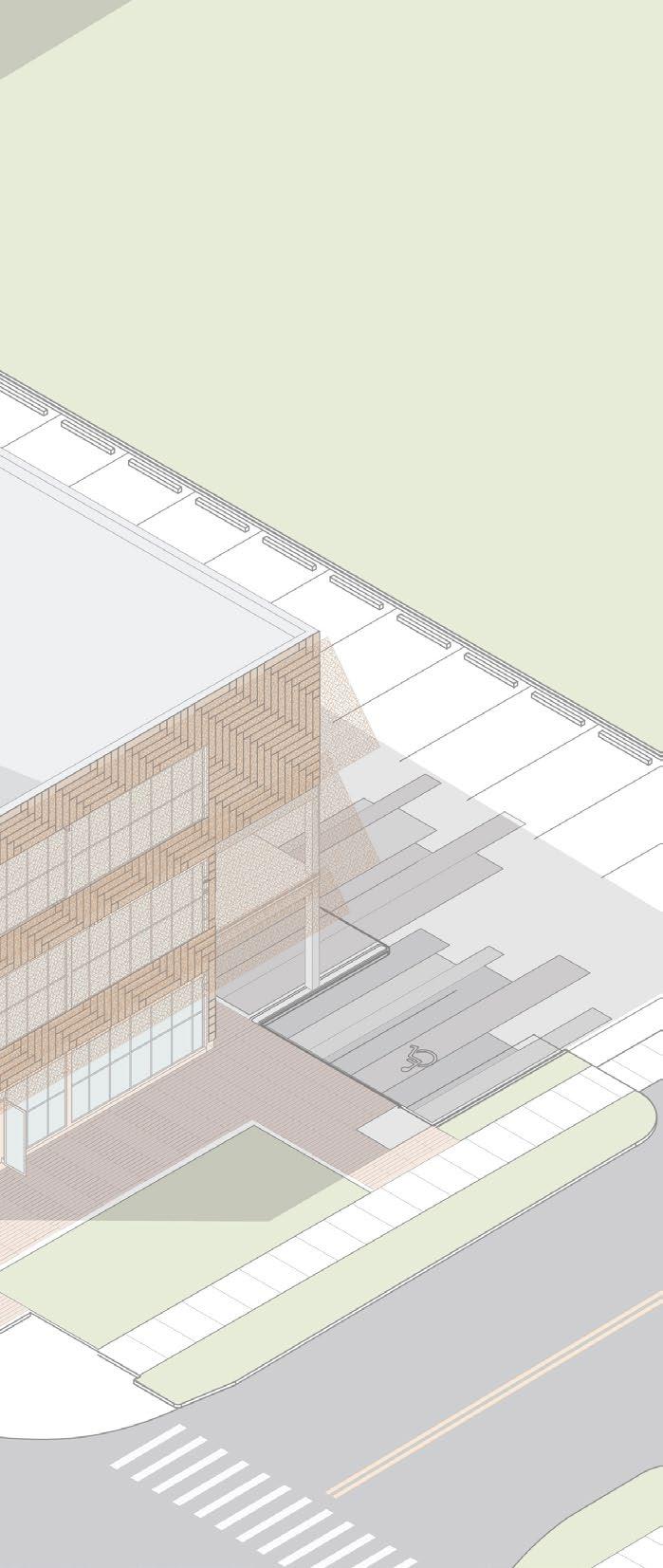 The public programs are concentrated toward the south side of the building to connect with the park, while private programs such as offices are designed to be on the north side of the building. The building is “protected” on either side with an entrance sector to the east and a private sector to the back. The focal points are offerings to the public as welcoming areas into the building.