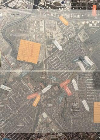 In a group of three, a large scale section of north Greenspoint was redesigned to provide access to green spaces and public transit, resolve the food desert, and increase affordable housing units. Each team member focused on a different section of the collective site.