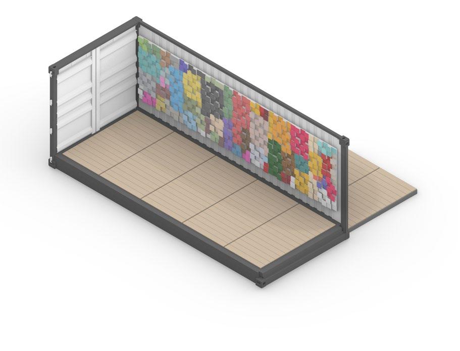 In collaboration with Eliza Redmann and David Wilson Stitching Stories is a 25-foot-long prison awareness quilt, crocheted by women incarcerated at North Carolina Correctional Institution for Women. This public art installation seeks to encapsulate the project into a more permanent form. The quilt squares will be translated into three-dimensional Folded Poetry and mosaics. The exhibit will initially be showcased in a custom-built shipping container, allowing it to be moved to different locations.