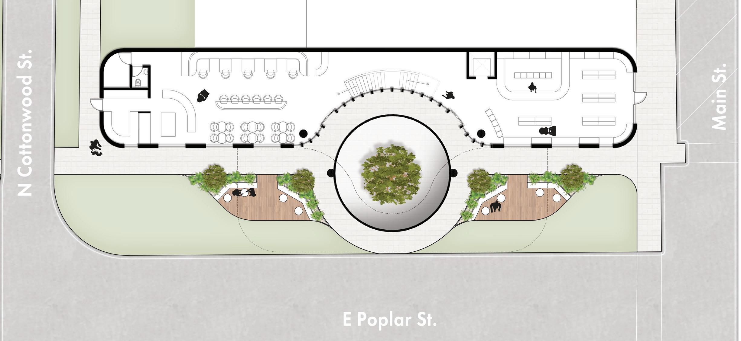 Creating a central entrance to have a better connectivity and visual connection with the green space.