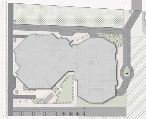 Central axis for pedestrians from the entrance of the site to the riverfront. The secondary axes are for vehilcles.