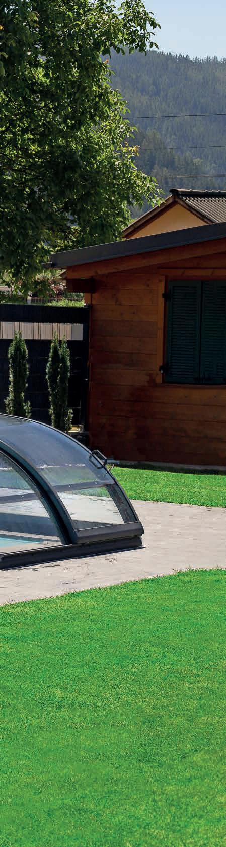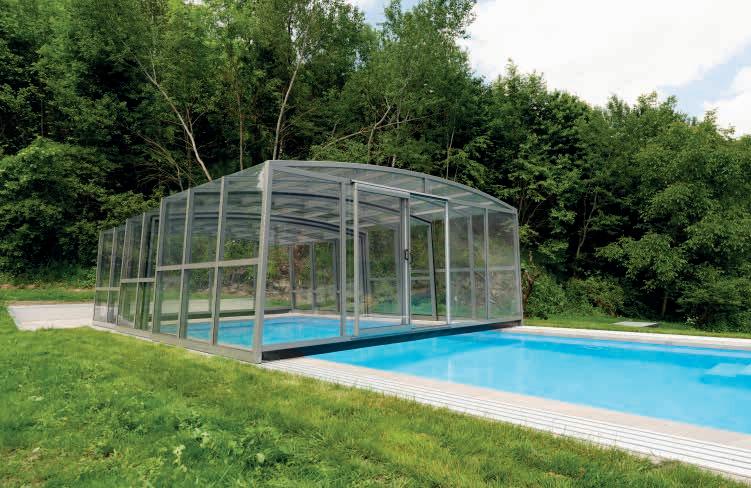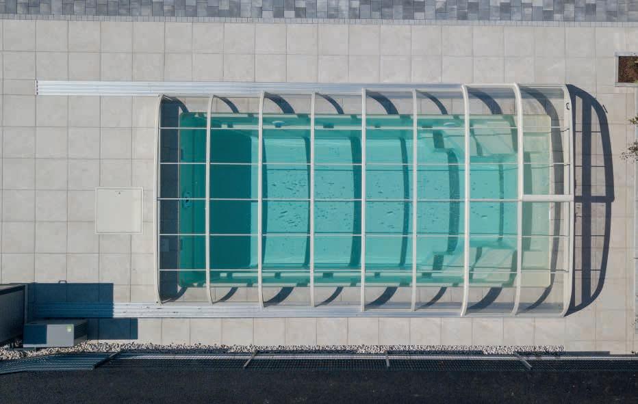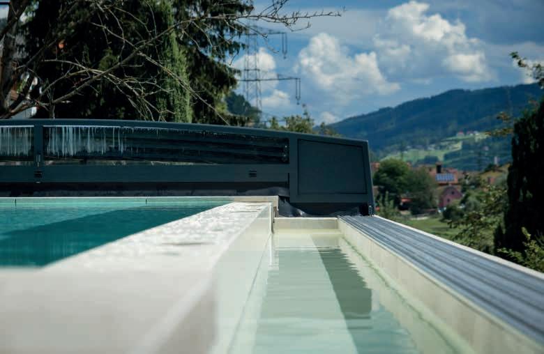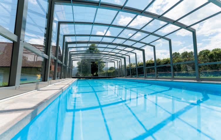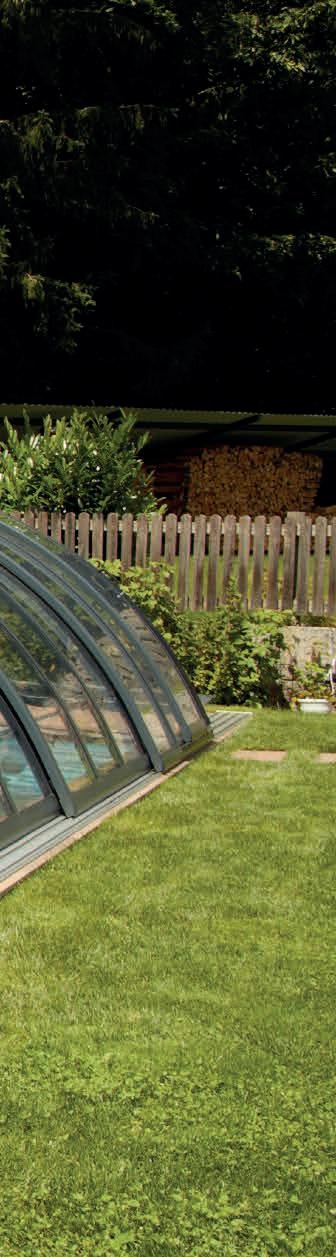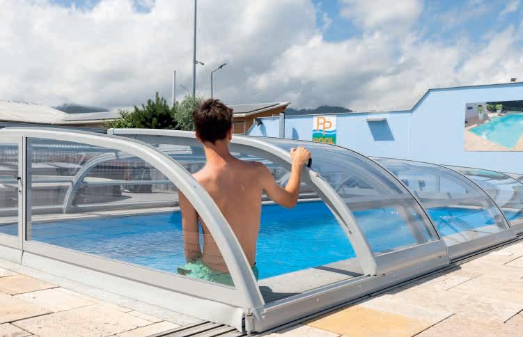 EN Our hybrid series was especially designed for customers who want to use their pool without limitations, even when it’s closed. The three variants P, L and XL differ in their height. The L variant of this model only requires a single-sided running rail.